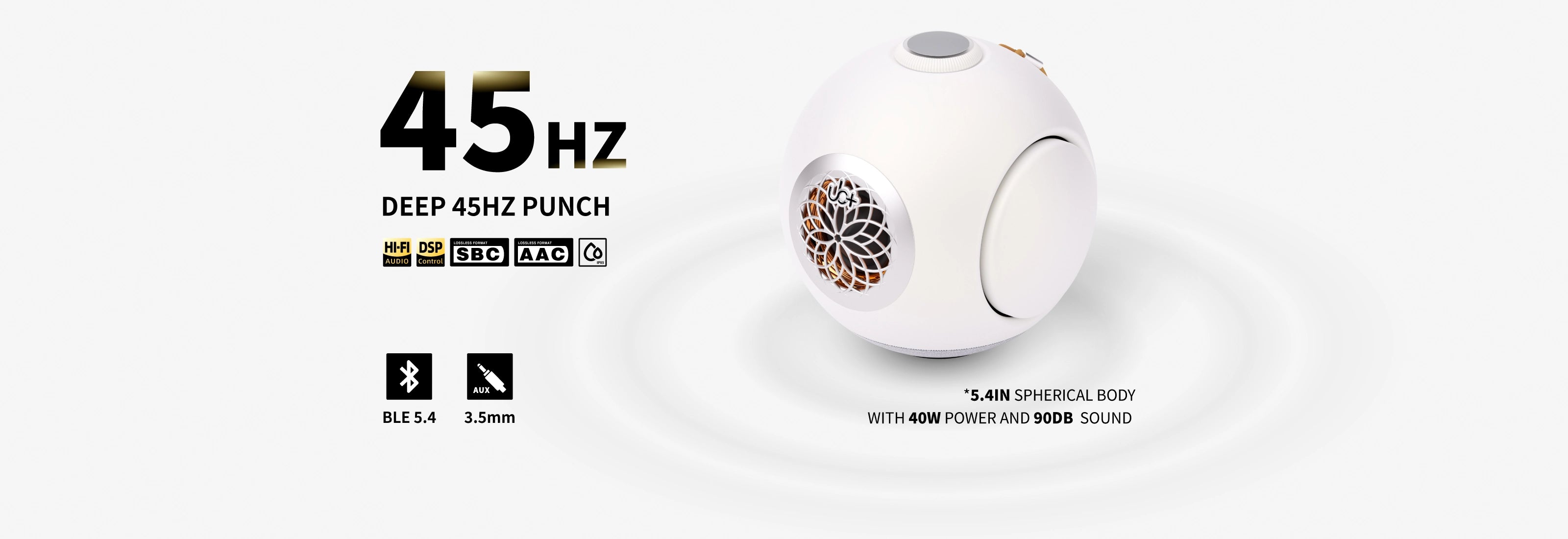 Patented round body with symmetrical chamber and bass enhancement panel minimizes distortion. 40Hz-20kHz range provides immersive soundfield, beautiful and uniform.